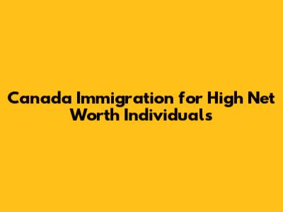 Canada Immigration For High Net Worth Individuals