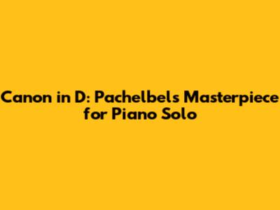 Canon In D: Pachelbel's Masterpiece For Piano Solo