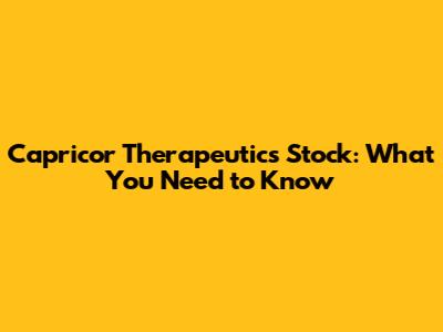 Capricor Therapeutics Stock: What You Need To Know