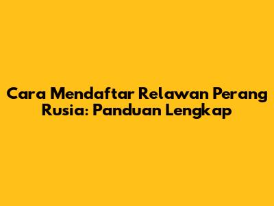 Cara Daftar Relawan Perang Rusia: Panduan Lengkap