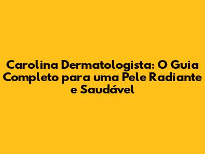 Carolina Dermatologista: Cuidados Com A Pele E Saúde Dermatológica