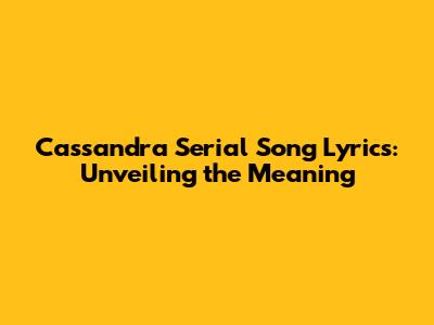 Cassandra Serial Song Lyrics: Unveiling The Meaning