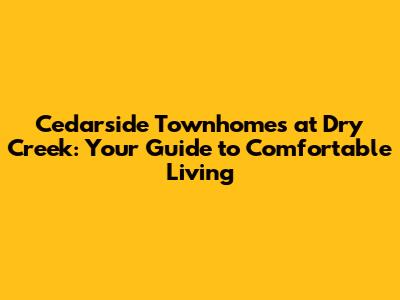 Hey guys! Are you on the hunt for a cozy and convenient place to call home? Let's dive into the world of Cedarside Townhomes at Dry Creek! This amazing community offers a blend of comfort, style, and a fantastic location. Whether you're a first-time homebuyer, a growing family, or someone looking to downsize without sacrificing quality, Cedarside Townhomes might just be your perfect match. In this article, we'll explore everything that makes Cedarside Townhomes a desirable place to live, from its prime location to its standout features.