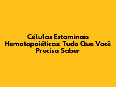 Células Estaminais Hematopoiéticas: Tudo Que Você Precisa Saber