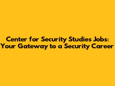 Center For Security Studies: Career Opportunities