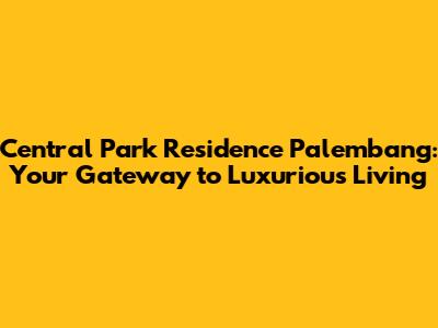 Central Park Residence Palembang: Your Guide To Luxurious Living
