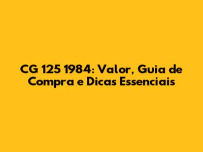 CG 125 1984: Valor, Guia De Compra E Dicas Essenciais