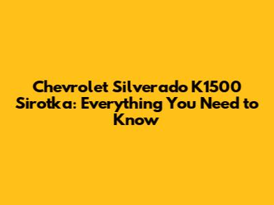 Chevrolet Silverado K1500 Sirotka: Everything You Need To Know