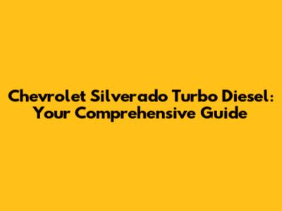 Chevrolet Silverado Turbo Diesel: Ultimate Guide