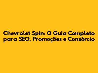 Chevrolet Spin: Tudo Sobre SEO, Promoções E Consórcio