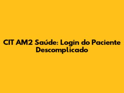 CIT AM2 Saúde: Login Do Paciente Descomplicado
