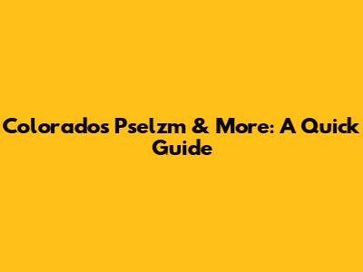 Colorado's Pselzm & More: A Quick Guide