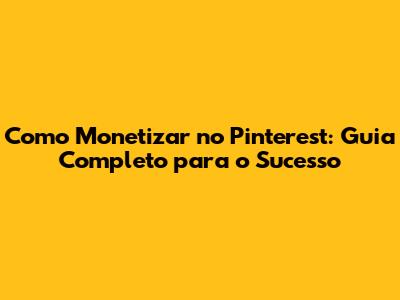 Como Monetizar No Pinterest: Guia Completo Para O Sucesso