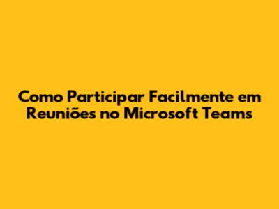 Como Participar Facilmente Em Reuniões No Microsoft Teams