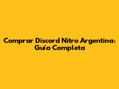 Comprar Discord Nitro Argentina: Guía Completa