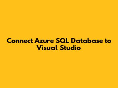 Step-by-Step Guide to Connect Azure SQL Database to Visual Studio