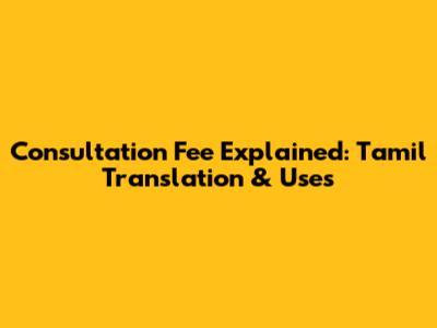 Consultation Fee Explained: Tamil Translation & Uses