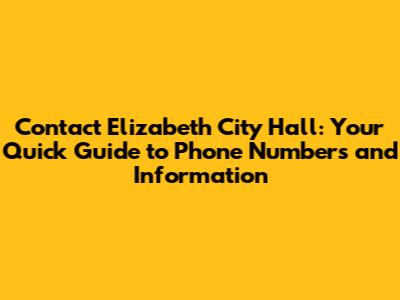 Contact Elizabeth City Hall: Phone Numbers & Essential Info