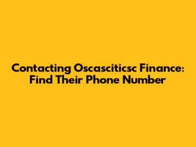 Contacting Oscasciticsc Finance: Find Their Phone Number