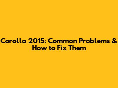 Corolla 2015: Common Problems & How To Fix Them