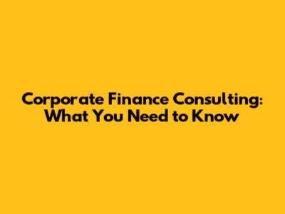 What is Corporate Finance Consulting?