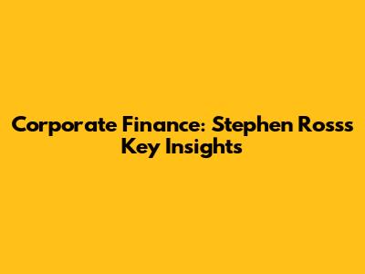 Corporate Finance: Stephen Ross's Key Insights