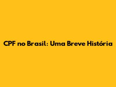 CPF No Brasil: Uma Breve História