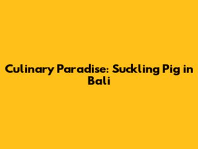 Culinary Paradise: Suckling Pig In Bali