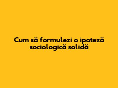 Cum Să Formulezi O Ipoteză Sociologică Solidă