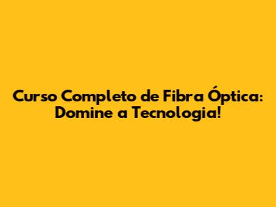 Curso Completo De Fibra Óptica: Domine A Tecnologia!