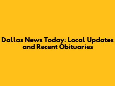 Dallas News Today: Local Updates And Recent Obituaries