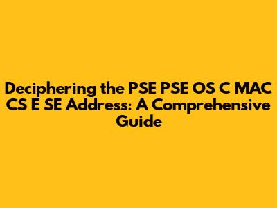 Deciphering The PSE PSE OS C MAC CS E SE Address: A Comprehensive Guide