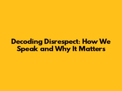 Decoding Disrespect: How We Speak And Why It Matters