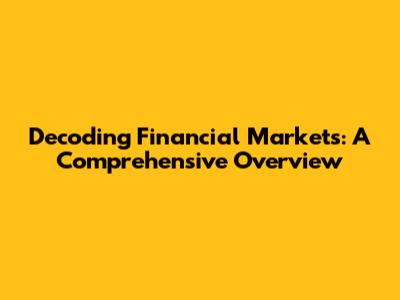Decoding Financial Markets: A Comprehensive Overview