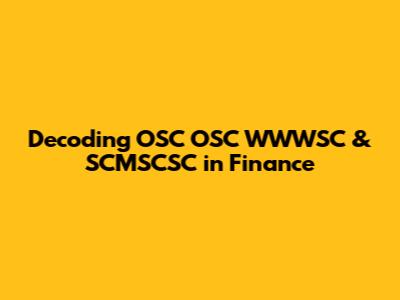 Decoding OSC OSC WWWSC & SCMSCSC In Finance