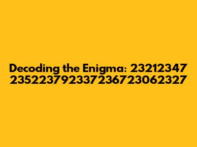 Decoding The Enigma: 23212347 235223792337236723062327