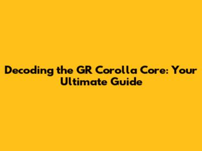 Decoding The GR Corolla Core: Your Ultimate Guide