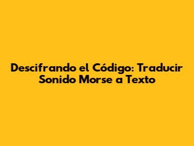 Descifrando El Código: Traducir Sonido Morse A Texto