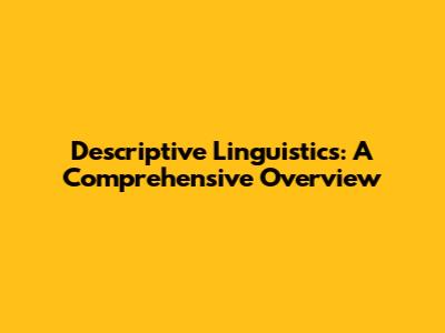 Descriptive Linguistics: A Comprehensive Overview