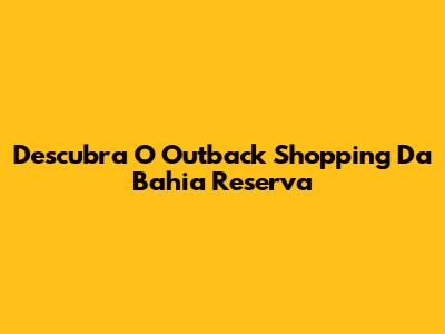 Descubra O Outback Shopping Da Bahia Reserva