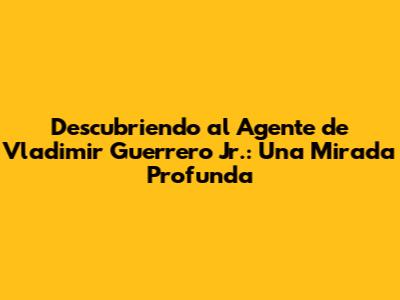 Descubriendo Al Agente De Vladimir Guerrero Jr.: Todo Lo Que Necesitas Saber