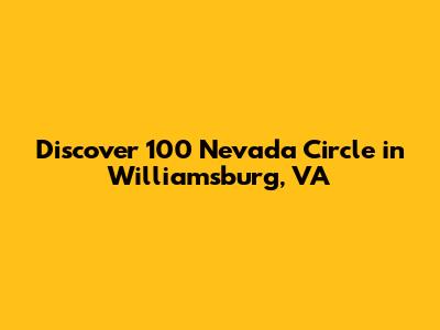 Hey guys, let's dive into the fantastic 100 Nevada Circle, Williamsburg, VA, a place that's really caught our eye! If you're looking for a slice of charm and convenience in the heart of Williamsburg, this address is definitely one to remember. We're going to unpack what makes this specific location so special, covering everything from its potential as a residence to its integration within the vibrant Williamsburg community. Williamsburg itself is a city steeped in history, blending the allure of its colonial past with the amenities of modern living. Think about it – you can be exploring historical landmarks one minute and enjoying a top-notch meal or shopping the next. 100 Nevada Circle sits right in this sweet spot, offering a prime location for those who want to experience the best of both worlds. We'll be exploring the neighborhood vibes, the type of properties you might find there, and why someone might choose this particular circle as their home base. Whether you're a potential buyer, a renter, or just curious about the Williamsburg area, stick around. We're breaking down the details to give you a clear picture of what life could be like at 100 Nevada Circle.
