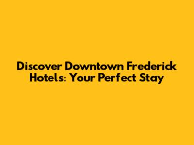 Discover Downtown Frederick Hotels: Your Perfect Stay