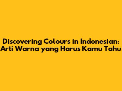 Discovering 'Colours' In Indonesian: Arti Warna Yang Harus Kamu Tahu