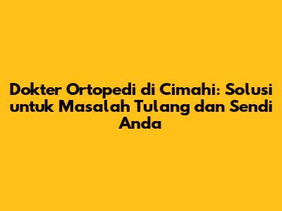 Dokter Ortopedi Terbaik Di Cimahi: Panduan Lengkap
