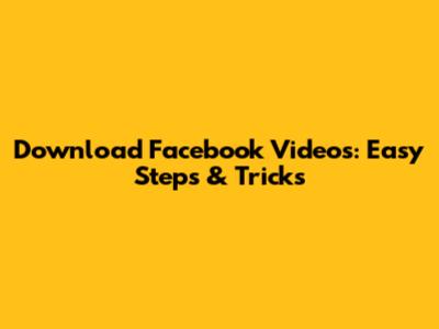 Download Facebook Videos: Easy Steps & Tricks