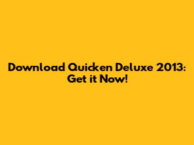 Download Quicken Deluxe 2013: Get It Now!