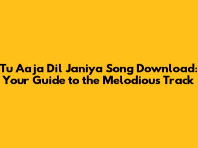 Download Tu Aaja Dil Janiya: Your Guide To The Melodious Track