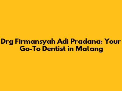 Drg Firmansyah Adi Pradana: Dentist In Malang