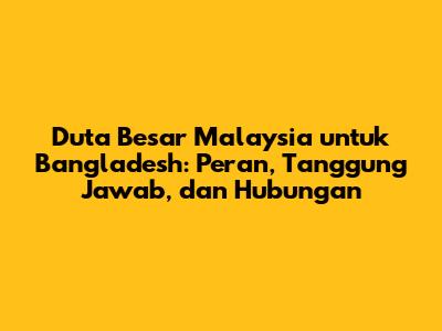 Duta Besar Malaysia Untuk Bangladesh: Peran, Tanggung Jawab, Dan Hubungan